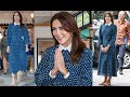 Indulge in the effortlessly chic and sophisticated style of Queen Mary of Denmark with this stunning geo floral printed midi dress. Crafted from 50% cotton fabric, this dress features a contrasting white collar and cuffs that add a touch of refinement to the overall look.