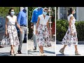 This dress features a sleeveless, V-neckline, high-waist band, and pleated midi skirt with an all-over floral print. Our design is a revised one-piece dress inspired by the original outfit worn by Queen Letizia, which consisted of a wrap white top paired with a skirt. To ensure comfort, our dress is fully lined, making it perfect for any occasion.